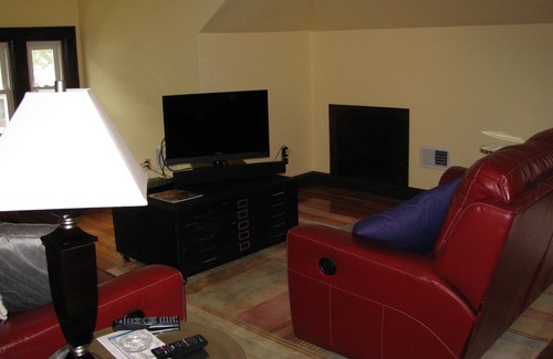 The third floor is open space for the entire floor, and has a lounge with two , two seat recliner sofas, large flat screen tv, hightop table and 6 chairs, built-in sink and counter space. There is another "roll-away" bed located in the attic that we can bring out for a 7th occupant.