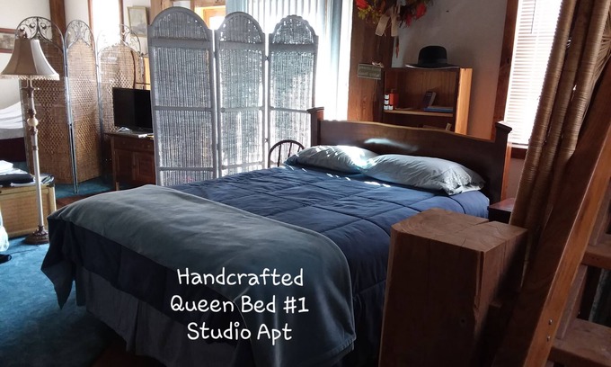Relax in The Old Mill's second-floor, studio apartment unit in the comfort of modern amenities with a mix of cozy, eclectic, antique and handcrafted furnishings and a fully-furnished kitchen. Marvel at The Old Mill's 1867 craftsmanship and mortise and tenon construction. Spectacular wooden beams, columns, timbers and ceiling joists were left exposed when the building was repurposed. Flooring was salvaged to frame the doors and windows. The architectural and engineering prowess that created Shell Rock's landmark is hard to imagine.