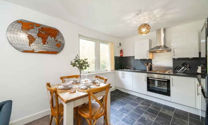 Welcome to our modern annex garden apartment, situated in the heart of the mature grounds of a historic 150 year old Jute Baron’s mansion. Located in Dundee’s prestigious West End, this unique property combines the charm of its heritage setting with the comfort of contemporary living. Surrounded by towering trees, with sweeping views of the Botanic Gardens, the River Tay, and the hills of Fife, this apartment offers an unparalleled backdrop for your stay.Whether you’re travelling, visiting friends, or working away, this self-catering accommodation is a fantastic home away from home. The apartment is nestled within Taypark House’s stunning garden ground, on the first floor through a shared entrance with the downstairs Garden Apartment. It features two spacious super-king/twin en-suite bedrooms (please specify bed set up at time of booking), offering flexibility for couples or groups. There is a comfortable open plan living, dining and fully equipped kitchen if you choose to cook during your stay - although we have an abundance of local restaurant recommendations to give you too. Additional amenities include a washing machine for longer stays, triple-glazed windows, and modern gas central heating, ensuring a cosy and inviting atmosphere, even on the chilliest of days. Please contact us if you wish to book both apartments as we’d be more than happy to provide a discounted rate.Whether you’re wandering through the lush greenery in the grounds outside, or simply relaxing in the peaceful surroundings taking in the views, you’ll feel a sense of serenity that makes it a great place to unwind and relax in.Whether you’re visiting Dundee to relax, work, or discover the city’s rich history and culture, this garden apartment is a fantastic base. With its blend of modern amenities, stunning views, and a peaceful setting steeped in history, it’s an exceptional place to call home during your stay. We look forward to welcoming you and helping you create lasting memories in this beautiful corner of Scotland.Although the apartment is on the grounds of The Taypark Hotel, this is run separately from the hotel itself. Whilst we always encourage guests to visit their sumptuous bar area, book a table at their stylish restaurant, or for a memorable experience, reserve one of their three cosy outdoor domes, each comfortably seating up to eight guests on their website, if you require any assistance during your stay please contact your hosts directly through your booking platform.Hosts won't be present however if you require support through your booking platform where messages are monitored constantly.Our location offers the perfect balance of convenience and natural beauty. Adjacent to the Botanic Gardens, the apartment provides easy access to some of Dundee’s key attractions. The nearby Dundee Airport is ideal for travellers, while Ninewells Hospital is just a short distance away for those visiting for work or medical reasons. A scenic walk will take you past the city’s university area, leading into the vibrant city centre. Here, you can explore local landmarks such as the Discovery and the stunning V&A Museum.For guests with cars, free private parking is available on-site, making it easy to explore the wider area, including the picturesque countryside of Fife across the River Tay. Alternatively, public transport couldn’t be more convenient, with a bus stop located right at our gate. The main bus route connects the property with the city centre, university, and Ninewells Hospital, offering seamless access to all major destinations.There is parking available in the hotel car park. The main bus route also connects the property with the city centre, university, and Ninewells Hospital, offering seamless access to all major destinations.