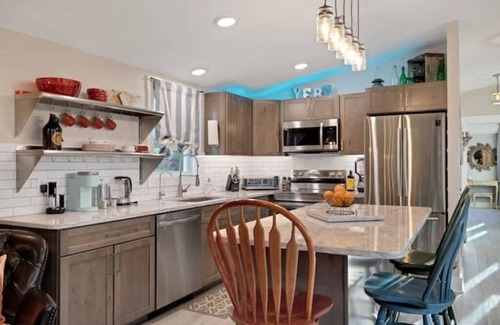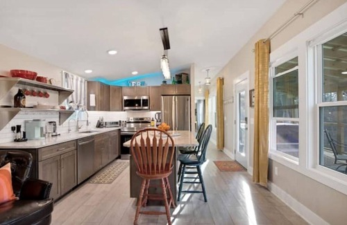 This cabin has a FULL-SIZE kitchen with FULL-SIZE appliances! Filtered water and automatic icemaker, dishwasher, oven/stove, toaster oven/air fryer, microwave oven, cooking oils, spices, slow cooker and an outdoor propane BBQ!