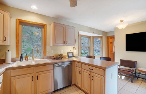 - Modern country cottage that is dog friendly with a fenced-in yard.