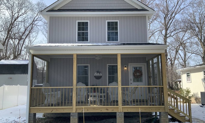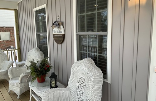 New home, large front porch with river view, quartz kitchen countertops, kitchen table seats 6, and family room. Comfortable and quiet. Rest and enjoy this beautiful home while enjoying the nearby river.