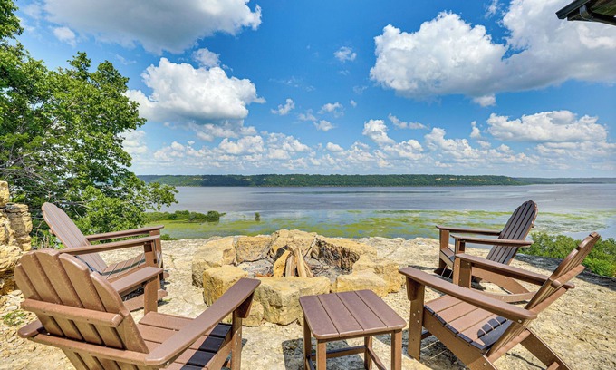 This Dubuque vacation rental, perched on a bluff above the Mississippi River, is designed for relaxation and connecting with nature. Head to the local marina to launch your boat, explore the area's parks and hiking trails, or grab a drink at a riverside bar. Later, return to the 4-bedroom, 3-bath home for a soak in the hot tub or a cookout on the deck while the sun sets over the water!