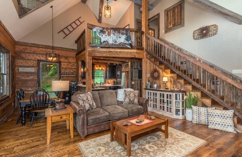 Riverbend Cabin! A Luxurious New Private Waterfront Log Cabin is located in Waynesville. Riverbend Cabin! A Luxurious New Private Waterfront Log Cabin provides accommodation, featuring Air Conditioner, TV, Sports/Activities, among other amenities. This Cabin features Air Conditioner, TV, Sports/Activities, to make your stay a comfortable one.