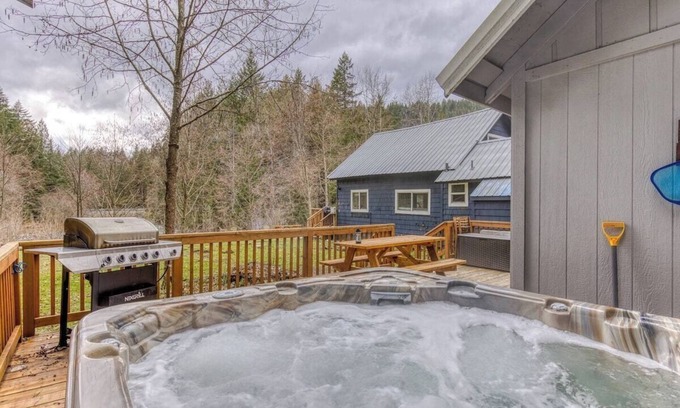 - Fantastic river cabin near Mount Hood with private hot tub, firepit & wood stove