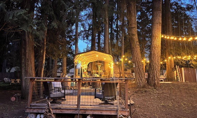 Experience the charm of riverside living at our cozy RV retreat, nestled on the peaceful banks of the Nisqually River in Yelm. With lush greenery and the calming sounds of the flowing river as your backdrop, this is the perfect escape for those seeking both relaxation and adventure. The RV accommodates up to 2 adults and 4 children comfortably, making it an ideal spot for families, couples, or small groups.