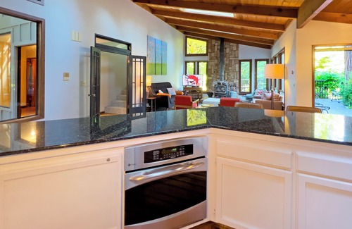 Much of your time here will be spent on the gorgeous deck, immersed in the redwoods that rise up through the deck boards. It's an incredibly special setting for morning coffee, afternoon barbecues, and evenings spent enjoying the quiet that this location offers.