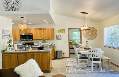 2000 sq ft beautiful riverviews and river front access, open floor plan, all new appliances, all new furniture, new beds and bedding and paint! Large deck with bbq and outdoor dining and spacious living room. In the Redwood National forest, on the crystal clear Smith River and close to the ocean. Great for quiet getaways, outdoor adventures and family vacations!
