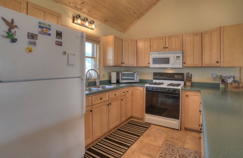 With king beds in both bedrooms and full, spacious bathrooms, our cabin is the perfect home for relaxing. The main bedroom even includes an en suite bathroom to feel the comforts of privacy while sharing the house with others.