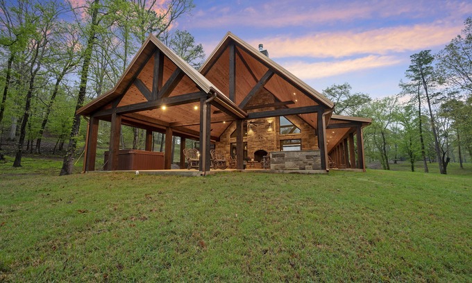Welcome to the Riverfront Cabin, an idyllic retreat nestled in the heart of Golden, Oklahoma, perfect for your dream wedding. With stunning mountain and river views set across 160 acres of pristine nature, this cabin offers an enchanting backdrop for romance and celebration. Imagine saying "I do" surrounded by towering trees, moss-covered boulders, and the gentle sounds of the Glover River, creating a serene atmosphere that is both intimate and picturesque. The spacious accommodations can host you and your guests, making it the ultimate destination for your special day.