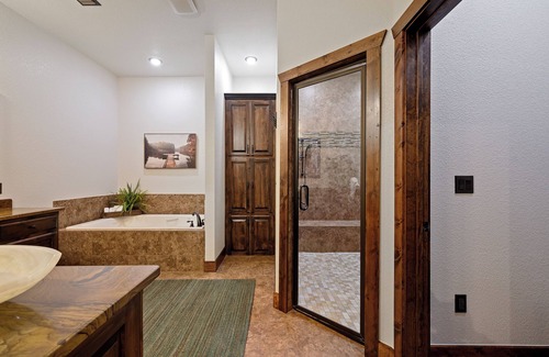 For your convenience, the bunkhouse includes a well-appointed full bathroom, equipped with both a refreshing shower and a separate bathtub for relaxing soaks after a day of adventures.