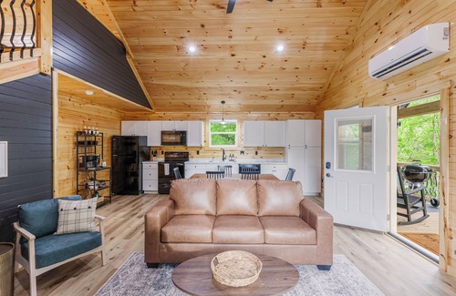 This is a new build cabin in a development called Cabins on the Cumberland. We are building 11 cabins and an event venue expected to be totally complete in 2025. Please note that we are still under construction but have made it possible for guests to have a wonderful stay as we bring this to life. You may see and hear our crew during your visit, but since the property is so wonderfully spread out, the noise is usually minimal.