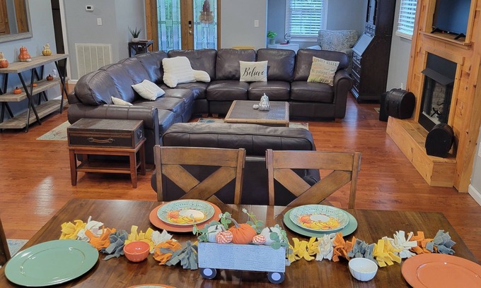 Hear and see the Pigeon River from our backyard! Raft(17+ rafting companies, just minutes down the road in Hartford) class IV & V rapids, Fish, Swim, Hike or just relax in the hot tub!! Our large yard is great for playing games or tent camping; be sure to enjoy the outdoor firepit in the evenings. Our cabin is conveniently located near the Smoky Mountains and Cherokee National National Forest!!