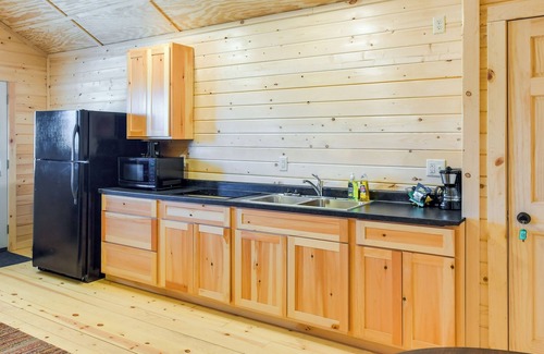 - NOTE: This single-story cabin features step-free entry via a ramp at the front door