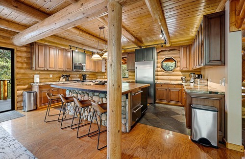 Step outside and you’re surrounded by nature: kids catching crawdads by the water, trails lined with wild blackberries, and the sound of the river flowing in the background. Soak in the hot tub at night, grill dinner under the stars, or curl up inside with a movie or board game. With a spacious kitchen, indoor and outdoor game zones, and a huge wraparound deck, this is a stay that makes it easy to unplug and reconnect.