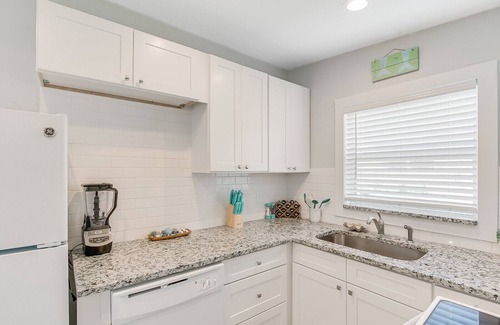 Perfect place to vacation!! This 2 bed 1 bath is completely updated with with all new furniture. Coastal decor throughout makes this the perfect place to call home while you’re on vacation. This condo has all NEW: windows, metal-roof, 6-inch baseboard, trim, blinds, fans, light fixtures, light switches, outlets, electric-panel, fresh interior paint, textured walls and ceiling. Kitchen has NEW white shaker style wood cabinets, lovely grey granite counter-tops, white subway tile backslash, and all new appliances. All three beds have memory foam mattresses. There’s an air mattress. Three brand new flat screen smart TV's. All cook wear, dishes, cups, tuber-wear, utensils are brand new. New Keurig, Ninja blender, also beach essentials, bbq grill and so much more. Come and watch the dolphins play from the large community dock. Walk to the beach and Taco city for lunch! 2.5 miles from downtown Cocoa Beach. 5 mins from Pineda Causeway. Coin washer and dryer are located and premises.