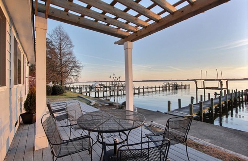 Discover the inner banks at the Pamlico Social Club. Our sweet little river cottage has historic charm with updated modern amenities. We're banking on you loving our beautiful river views & pier updates. On the street side, we are bordered by a mature pecan grove and have views of the adjacent inlet. Sleeping accommodations include two bedrooms, one with king size bed. The larger bedroom has a queen bed, & a bunk bed. Our living room has a mega comfortable 8 foot couch. Our kitchen facelift includes great cabinets & we are especially stoked about our brand new dishwasher. If it's a fishing expedition you have in mind, we have a great pier and boat dock. Test the waters and venture out after the fall run on striped bass, water ski, catch crabs from the pier, or just sit on the porch and take in the river view. We recommend that you shop at nearby Piggly Wiggly & test the fine cuisine at The Bank Bistro and Bar on Main Street or Washington Crab Shack. Explore all little Washington has to offer.
