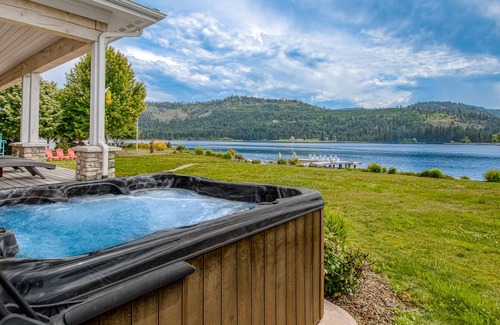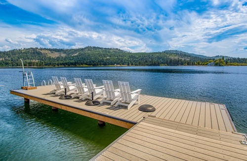 Upon entering this riverfront charmer, you will discover a spacious open floor plan with high vaulted ceilings, exposed wood beams, and plenty of windows that let the natural light in. Some of the custom finishes include plank-style flooring, craftsman doors, solid surface counters, tile backsplash, and more. Spread out comfortably in the welcoming living area, furnished with comfy sofas in front of a stone gas fireplace and a smart TV with streaming services to keep you entertained during your stay. From here, you can admire the beauty of the Pend Oreille River and also access the porch. Prepare memorable culinary masterpieces in the well-appointed, open kitchen that boasts stainless steel appliances and a sparkling island with plenty of seating. The adjoining dining table is perfect for family meals and board game nights. In addition, the main level enjoys all four bedrooms and a designated laundry room with a washer/dryer. A fantastic lake-view primary suite featuring porch access, two walk-in closets, and an en suite bath with a shower and a soaking tub can be found here as well. Upstairs is a large loft and a half bathroom. This loft is great for entertaining as it boasts a pool table, a rec area with a smart TV, a convenient desk, and plenty of comfy sleeping options.