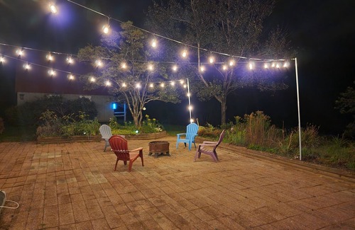 Relax on the patio on the bank of the Williams River to watch the leaves turn, explore hiking trails, enjoy the outdoor fire pit, and mnt bike. Play soccer on indoor turf or corn hole in the rec room—half mi. from outdoor ice skating, disk golf, and VAST. Our three-bedroom home has one1 bunk room, two rooms overlooking the Williams River, and two full bathrooms- perfect for a family getaway. Enjoy grilling on the private back patio.