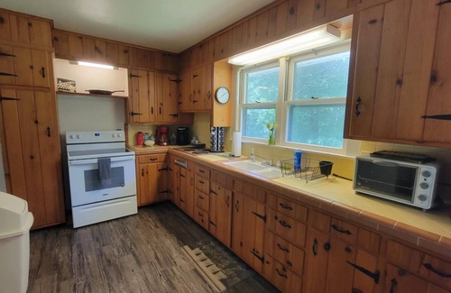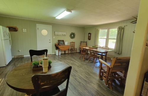 Osage and Kings River Fishing- Floating access right at your back door. Located 1 mile from the city limits, and 10 min drive to Eureka Springs, AR, directly on the Osage River, which flows into the Kings River. Two rivers in NW Arkansas that provide some of the best Smallmouth fishing in the state. This property is a home perfect for a group wanting to spend time on the river. Directly on the water, it provides a beach, where the kids (or adults!) could camp, build a campfire, swim, and explore the 10 acres it provides. Sleeps 6, absolutely perfect for a fishing / floating trip. It is just a two bed room. But is a large older home. It is secluded and not a lot of traffic on the road which makes it very quiet. We just got WiFi!!!