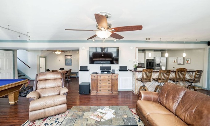 Internet and Indoor Entertainment: Enjoy high-speed internet throughout the house, perfect for streaming, working online, and indoor activities. The oversized family room includes a pool table, bumper pool, game/puzzle table, soft tip darts, a variety of games, puzzles, and books, and a 58-inch TV with surround sound and DVD player.