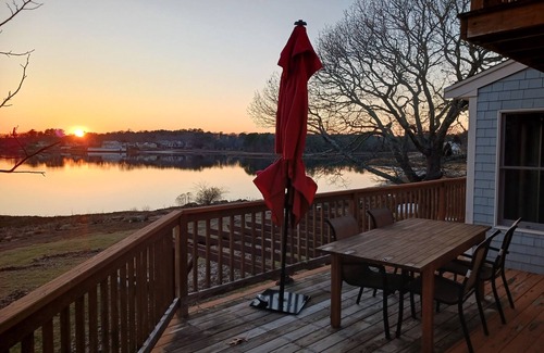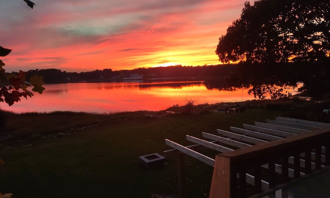 Great house overlooking beautiful Wareham river enjoy spectacular sunsets from wraparound porch or the large patio near firepit. Work out in gym 🏋️♂️ run on treadmill and walk out to riverand go kyacking