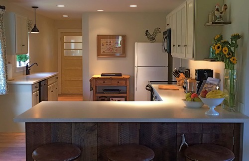 The rental includes all the comforts of a well set up home: Wireless high-speed internet; DISH TV (200 channels); DVD player; Audio receiver wired to speakers both inside and outside the house; Laundry room (with deep sink, washer, dryer, iron, ironing board and ample hanging space), Mudroom (with more storage), Kitchen (with electric range and oven, microwave, dishwasher, coffee maker & grinder, blender, mixer, good selection of bake-ware and a large collection of new table and glassware); Linen closet with bath towels, soap and linens. We also provide many extras in the laundry and kitchen like cleaning supplies and kitchen basics so you won't feel like you have to stock the house from scratch for your stay.