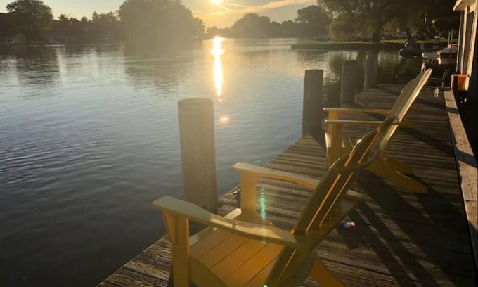 Riverfront home on Doty Island in peaceful residential area. Built in 1936, our home has character + charm. Seasonal heated pool, hot-tub & waterfront patio. Relax, kayak or fish off of the riverfront dock. 100 feet of Fox River frontage - minutes from Lake Winnebago by boat or kayak and 8 min to the highway. Come for some R&R or for an event (EAA) our family home is in the heart of it all! 5 bedrooms, 3 bathrooms. Hens providing fresh eggs daily! Licensed by the Menasha Health Department.
