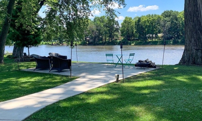 Escape to this beautifully renovated 3-bedroom home with stunning Kankakee River views! Relax on the spacious deck or riverside patio while enjoying wildlife and peaceful scenery. Steps from Conrad Park and Island Park, you can stroll to local restaurants and shops. With all the comforts of home and just 50 miles from Chicago, it’s perfect for a getaway. Need more room? Book the cozy cabin next door tha hosts 4 more people! Your riverside retreat awaits—reserve your stay today!