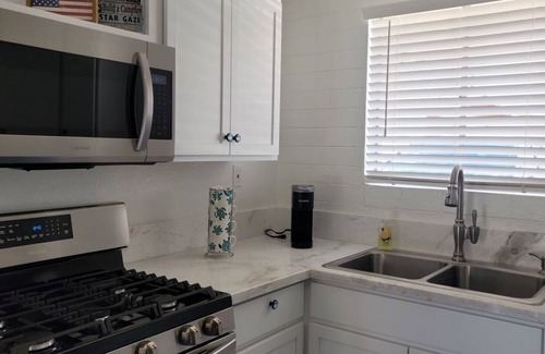 This suite is spacious and cozy. Cleaned and sanitized. One master with full bathroom and slider. One bedroom with queen bed and a slider. One bedroom with 5 bunk beds. Two full bathrooms. Living room, dining table. Full kitchen with everything you need to cook inside or outside on the BBQ (propane provide). Private patio with plenty of seating. If you have a bigger group and need extra space, we have the house next door that sleeps 10, attach to the Ocean Suite is the Junior Pirate that sleeps 5, and next is the Pirate Villa that sleeps 7. Family and friends can enjoy private dock, and 300ft of riverfront beach. There is room to tie your boat or watercraft. Plenty of free parking for your trailer and more. The location is perfect!!!