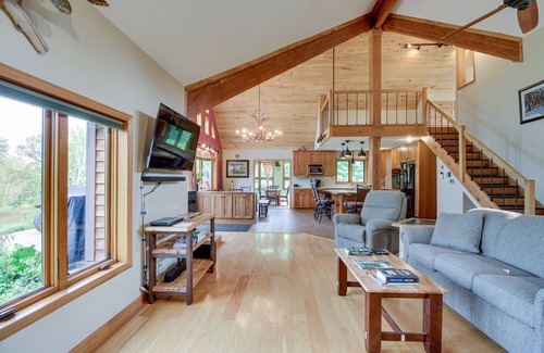 Situated on the Mississippi River, this Palisade vacation rental will be your home away from home while adventuring. With a fully equipped kitchen, detached cabin with a wood-burning stove, and sunny interior, this all-season property has it all! Be sure to check out the riverfront activities, spend the day on the lake, or take on the Savanna Portage Trail. Return home to grill up a meal on the patio for your crew. There’s something for everyone to see and do at this 2-bedroom, 2-bath retreat!