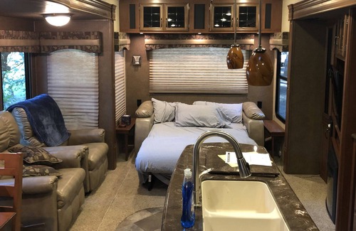 - Just off I-5, RV available on a secluded lot. Close to town.
