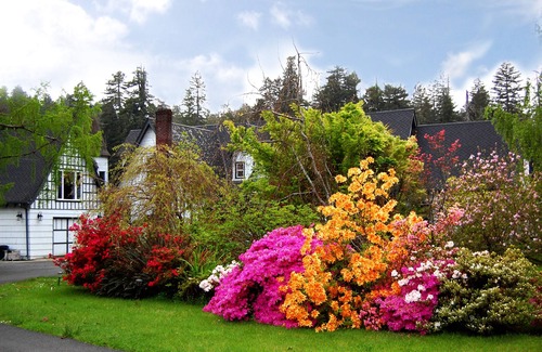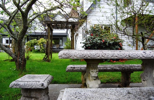 The house sits on 1.3 acres of sprawling lawns, gardens, lily ponds and fountains and has a private deck and small orchard. The architecture is reminiscent of the 16th-century Tudor period, providing a classic ambiance with all the modern comforts to make your stay in the heart of the redwoods memorable and relaxing.