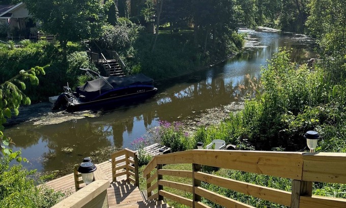 Located in a quiet subdivision on the Pigeon River, leading to the marinas & the break wall. Close to everything, yet plenty of privacy in the yard.