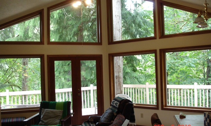"PEACE OF THE RIVER" vacation rental home offers Lodge like comfort and large wraparound deck. Great relaxing time for all! Get your "PEACE of the RIVER" THIS YEAR! Reserve your dates today. Have a Family gathering or Romantic Retreat. Plan a Guys Fishing Trip, or a Girls Weekend, Great for 2-3 couples, or small groups. Throw your hectic schedule out the window! Book your stay today! Unplug & Relax in our comfy environment. So quiet you can hear yourself think. Satellite TV, internet, WiFi available but it's also a great place for taking a 'Tech Time Out!' Enjoy your favorite beverage on the deck as the 'river parade' floats by in summer. Walk to the local 'swimming hole'. Bring tubes & float the river during summer. Read (wide variety of books here), do yoga or power nap your way to rejuvenation! Things to do: Try your luck at fishing. Visit local antique shops in nearby Kalama. Enjoy day trips to Mt. Saint Helens (hiking, volcano, lava caves), Portland, quaint Astoria, OR; Treehouse Island Zipline in Silverlake, the Columbia River falls, the Outlet Malls up I-5N to Centralia for shopping. Ease on in and make yourself at home today! Great Room w/FP. Modern kitchen. Master BR (queen) w/full bath on main level. Also main level smaller 2nd BR ( queen), hall bath w/shower. Downstairs spacious room w/FP & large windows overlooking river accommodates additional sleepers on queen bed + 3/4bath. Washer/dryer. NO SMOKING. NO PETS. Best for up to 6 people. High bank waterfront, not recommended for young children, but we let families decide. Many families with children of different ages have stayed without incident. We just want to use an abundance of caution for the safety of the young ones. BUSINESS DETAILS for renting this property. Clicking "BOOK IT NOW" starts a 24 hour time clock to complete rental arrangements. So if you choose the "BOOK IT NOW" option please provide ALL your contact info plus a copy of your driver license & or passport (for our out of country guests) for verification so I can prepare your personalized Rental Agreement and upload it to the website for your approval within the 24 hour countdown. The 24 hour countdown is sometimes challenging due to travel/business schedules, or people in different time zones or other countries. Secure financial arrangements are made through website only. Preference given to 3+ day rentals. Holiday weekends 3 day minimum. Reservation confirmed upon receipt of 50% rent, approved rental agreement & Property Damage Protection (nonrefundable). Credit cards accepted through website. Final payment is due 30 days before arrival date. See Sample Rental Agreement & House Rules on website. See website for cancellation details. Once final payment is made, within 30 days of arrival, NO REFUNDS are given so we recommend Travel insurance to preserve your vacation $ in case last minute cancellation becomes necessary. BOOK YOUR STAY TODAY!!!