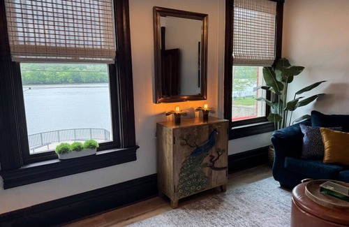 Whiskers on the Water is a second-story sanctuary crafted for connection, comfort, and calm. Perched above New Richmond’s scenic riverfront, this just renovated suite blends historical charm with stylish modern updates—perfect for a romantic escape or a peaceful solo recharge.