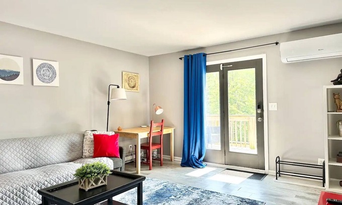 The space is designed to provide you with a comfortable, clean, and safe stay while connecting you with nature. In the summer you can sit out on the deck and watch the sunset on the river, go kayaking, go on a nature walk at Saw Wee Kee Park which is a 14 minute drive from this townhome or just go take a stroll through Downtown Yorkville.