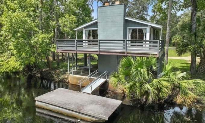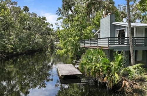 Our home sits right on the Steinhatchee river, It's Upstairs balcony looks over the river for a relaxing view along with the wildlife management area across the river. There's a dining bar on the second floor deck for meals that also overlooks the river. If you're lucky you'll catch a glimpse of a manatee in the river. There are 4 kayaks at the cabin with PFD's for adult use.