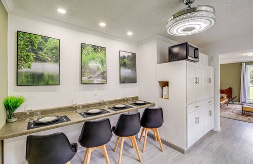 INDOOR LIVING: 50" Smart TV w/ Roku, breakfast bar w/ seating, 2 desks, walk-in shower, shower/tub combo, ceiling fans, board games