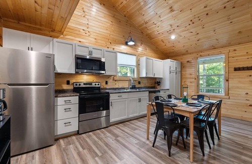 This is a new build cabin in a development called Cabins on the Cumberland. We are building 11 cabins and an event venue expected to be totally complete in 2025. Please note that we are still under construction but have made it possible for guests to have a wonderful stay as we bring this to life. You may see and hear our crew during your visit, but since the property is so wonderfully spread out, the noise is usually minimal.