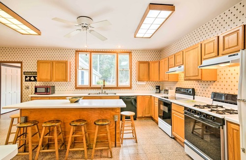 Unplug by the water at 'The Riverside Lodge,' a 6-bedroom, 4-bath Wilcox vacation rental set right on the Clarion River. With a 5,000-square-foot interior and a lush waterfront ripe for exploring, it's made for a rip-roaring adventure or a low-key retreat. Reel in trout from the backyard, sip something cold on the porch, and end the day roasting hot dogs over the fire pit.