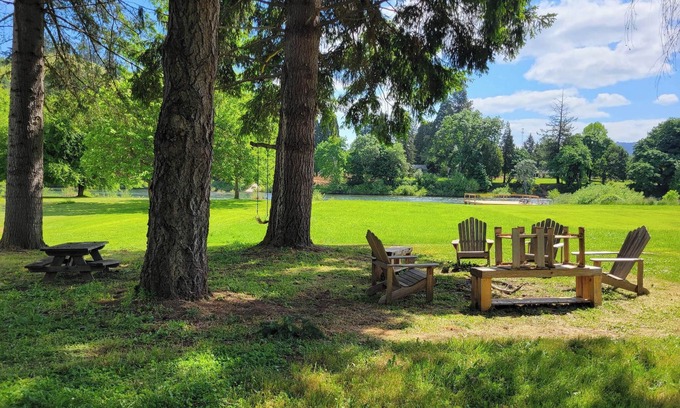 Riverfront is located in Roseburg. Riverfront provides accommodation, featuring Wellness Facilities, Fireplace/Heating, Barbecue/Outdoor Cooking, among other amenities. This House features Wellness Facilities, Fireplace/Heating, Barbecue/Outdoor Cooking, to make your stay a comfortable one.