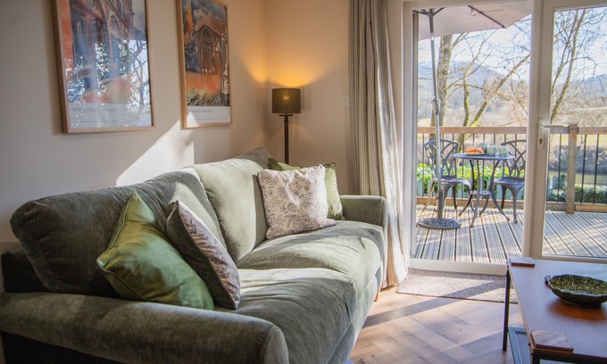 Step outside to enjoy the private outdoor space overlooking the River Severn, offering a peaceful spot to relax and take in the beautiful surroundings. With onsite parking and a prime riverside location near Ironbridge, this retreat is ideal for a romantic getaway or a quiet escape.