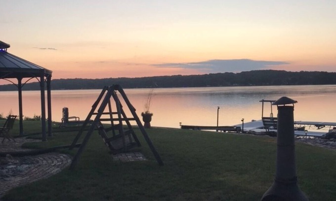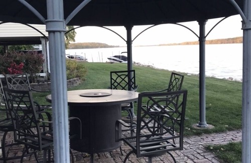This home is located just North of the popular river town of Le Claire, IA. This is a 3 bedroom, 3 full bath house with plenty of open space and large rooms. Each room has a king size bed. 2 of the 3 rooms have large smart T.V.'s. The living rooms up stairs and down stairs each have their own smart television as well. There is a deck that provides an amazing overlook over the river. There is a one car attached garage and a two car detached garage , with plenty of additional parking . We also have our own ramp to put your boats in and a dock to keep your boats at our property. The gazebo with the fire table provides gorgeous views of the river while you relax and socialize with friends or family. The lower garage has a fridge , and there are areas to store your tackle and fillet your fish if you are wanting to fish. There are also two fire pits for having an outdoor fire by the river .