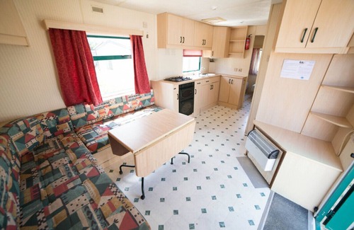 It has a centre lounge and 2 bedrooms with can sleep up to five people, one double and one twin with a third bunk, suitable for a child. There’s also the facility to turn one of the beds into a cot.