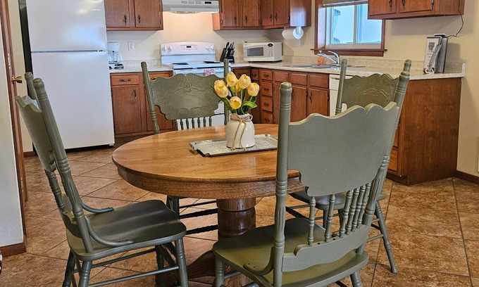 Located on the Yellowstone River, Parks Riverside is a cozy retreat in the heart of Gardiner, Montana. The rental is a duplex building. Unit B is a two bedroom, one bathroom comfortable living space. It includes an open kitchen with all the necessities, and a calm living room area with a sleeper sofa.