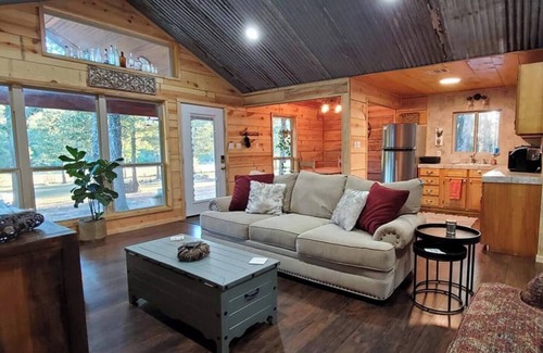 Welcome to Riverside Cabin—one of four secluded cabins nestled on a private 26-acre property in SE Oklahoma. This riverfront retreat offers stunning views of the Kiamichi Mountains and Little River, right from your windows. Enjoy kayaking, fishing, or just relaxing by the firepit under star-filled skies.
