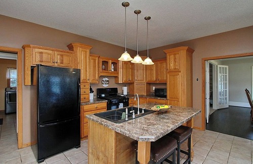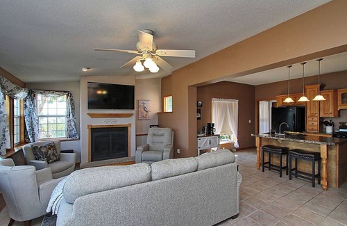 Looking for a restful getaway? The Mississippi Manor house in Sabula Iowa is the place to go. Relax in the quiet comfort of this 4 bedroom brick home. Main floor boasts an open kitchen/living room space with amazing views of the Mississippi River frontage. Living room has a fireplace, and smart tv for your enjoyment.