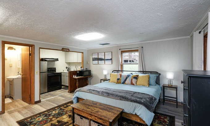 You have full and total access to the room with a front private entrance during your stay. Feel free to stream shows as much as you like, whip up anything you can dream of in our fully stocked kitchen, or jump in your car/take an Uber to town!