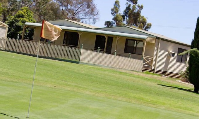The Riverside Golf Club 3 Bedroom holiday house looks over the 18th green and fairway. Riverside Golf Club is located on the banks of the Murray River 6 kilometres from the centre of the City of Mildura. The golf course features 18 grass greens and watered fairways set amongst majestic river red gum and box trees. Our fully self contained guest house accommodates up to eight people. We have two bedrooms fitted with two single beds each, plus a master bedroom with a queen size bed and a fold out lounge bed in the living room. For groups of more than four there is access to three extra toilets and two showers in the adjacent Clubhouse. Our holiday house is fully air-conditioned and fenced front and back yard for the safety of young children, fully operational kitchen and laundry with washing machine and dryer. BBQ & entertaining area offers great views with shade. We offer ample secure parking for whose with boats , trailers and trucks. Riverside is part of Parks Victoria home to abundant native wildlife, friendly kookaburras and mobs of Kangaroos.